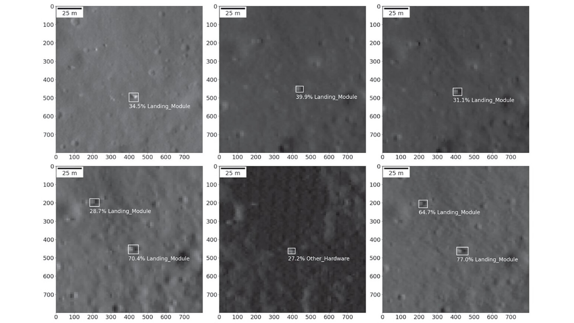 Чтобы продолжить поиски, специалист по данным из University College London Льюис Пино разработал алгоритм машинного обучения, обучив его на съёмках LROC с нескольких мест посадки аппаратов «Аполлон». Модель получила название You‑Only‑Look‑Once — Extraterrestrial Artifact (YOLO‑ETA это алгоритм компьютерного зрения, разработанный международной группой исследователей из Великобритании и Японии) и научилась выявлять слабо заметные следы, оставленные посадочными модулями на лунной поверхности. Команда проверяла YOLO‑ETA на незнакомых снимках, в том числе на изображениях советской Луна‑16 (посадка в 1970 году); в целом модель показала высокую точность и уверенность в оценках.