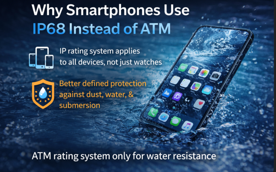В смартфонах приоритет отдается защите от попадания воды и пыли во внутреннюю электронику, поэтому они используют систему оценки IP, а не ATM.