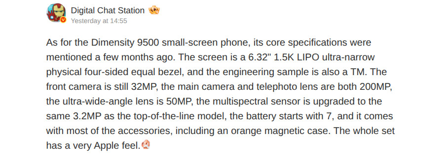 Устройство будет оснащено чипсетом MediaTek Dimensity 9500. Что касается камер, то утечка предполагает, что в Find X9s Pro могут быть установлены два отдельных 200-мегапиксельных сенсора.