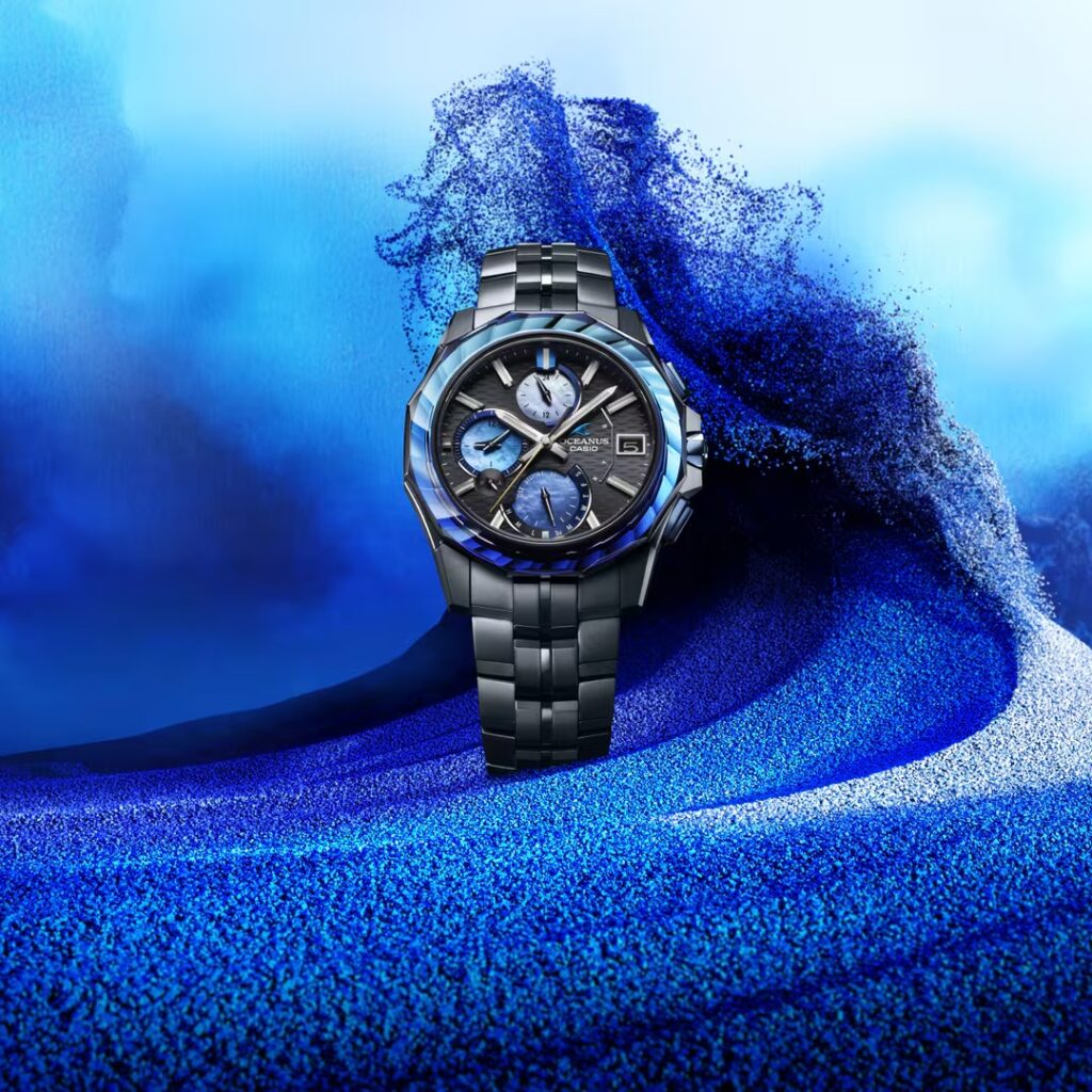 Модели OCW-S7000AP и OCW-T2600AP оснащены черным основным циферблатом с тонкими волнообразными узорами, имитирующими движение океана. Безель OCW-S6000AP украшен сапфировым стеклом со спиральной огранкой, символизирующей мощные океанские волны. Титановый безель и корпус Casio покрыты ионным покрытием темно-синего цвета, которое соответствует оттенку индиго.