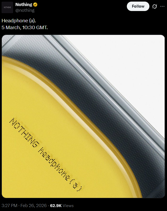 Компания Nothing готовится к очередному расширению линейки аудиосистем, на этот раз за счет более доступной пары накладных наушников. Дебют наушников Nothing (a) запланирован на 5 марта 2026 года, во время мероприятия компании “Built Different”.