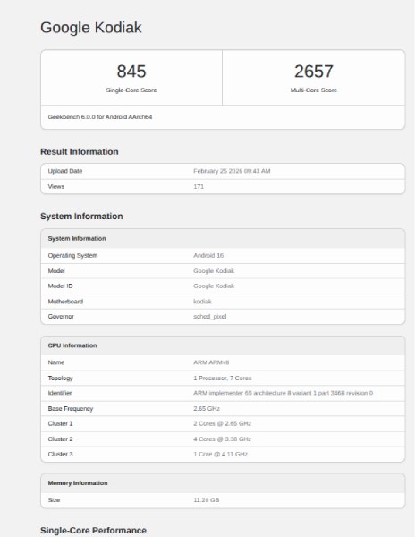 Список связан с устройством под названием “Google Kodiak”. Это название не ново. Ранее оно ассоциировалось с Pixel 10 Pro XL. Но, согласно Notebookcheck, этот новый внешний вид может указывать на модель Pixel 11. Причина кроется в конфигурации процессора.