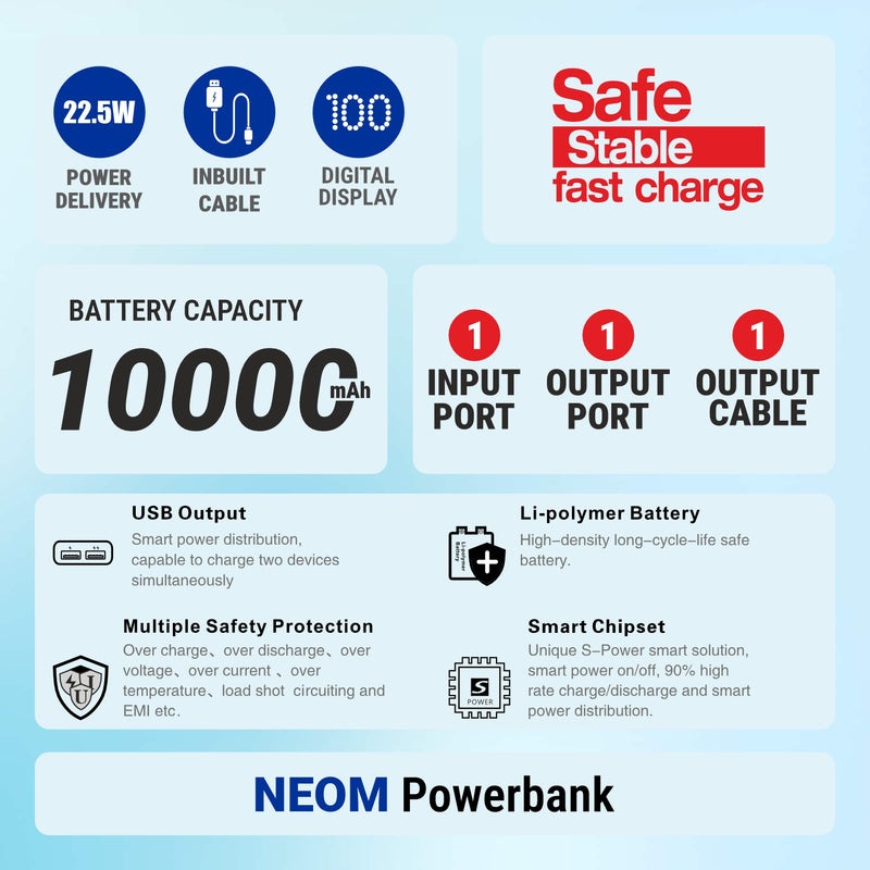 Компания Unix выпустила в Индии UX-1519 NEOM — компактный блок питания емкостью 10 000 мАч, предназначенный для пользователей, которым требуется быстрая зарядка. Устройство поддерживает мощность до 22,5 Вт и поставляется в небольшом квадратном корпусе размером 7,5 на 6,5 см, что позволяет легко носить его в кармане или сумке.