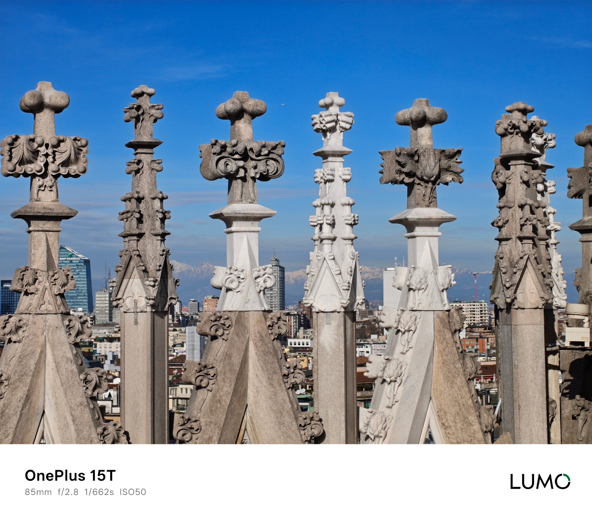 На изображениях, опубликованных студией Wang Meng, имеется водяной знак толщиной 85 мм, подтверждающий наличие в OnePlus 15T 50-мегапиксельной перископической телеобъективной камеры с 3,5-кратным оптическим зумом. В образцах представлены детализированные архитектурные снимки и портреты естественного вида, что позволяет улучшить разделение объектов и глубину изображения.