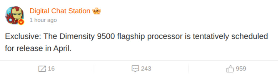 По словам известного информатора Weibo, Digital Chat Station, выпуск флагманского процессора Dimensity 9500 от определенного производителя ориентировочно запланирован на апрель.