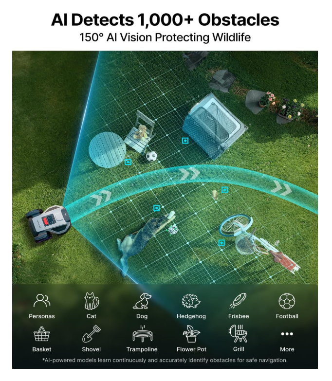 Оснащенная двумя HDR-камерами, M5 может распознавать более 1000 препятствий для повышения безопасности. Он также оснащен функцией экстренного торможения, водонепроницаемостью по стандарту IPX6 и работает тихо (менее 58 дБ), что делает его удобным для соседей.