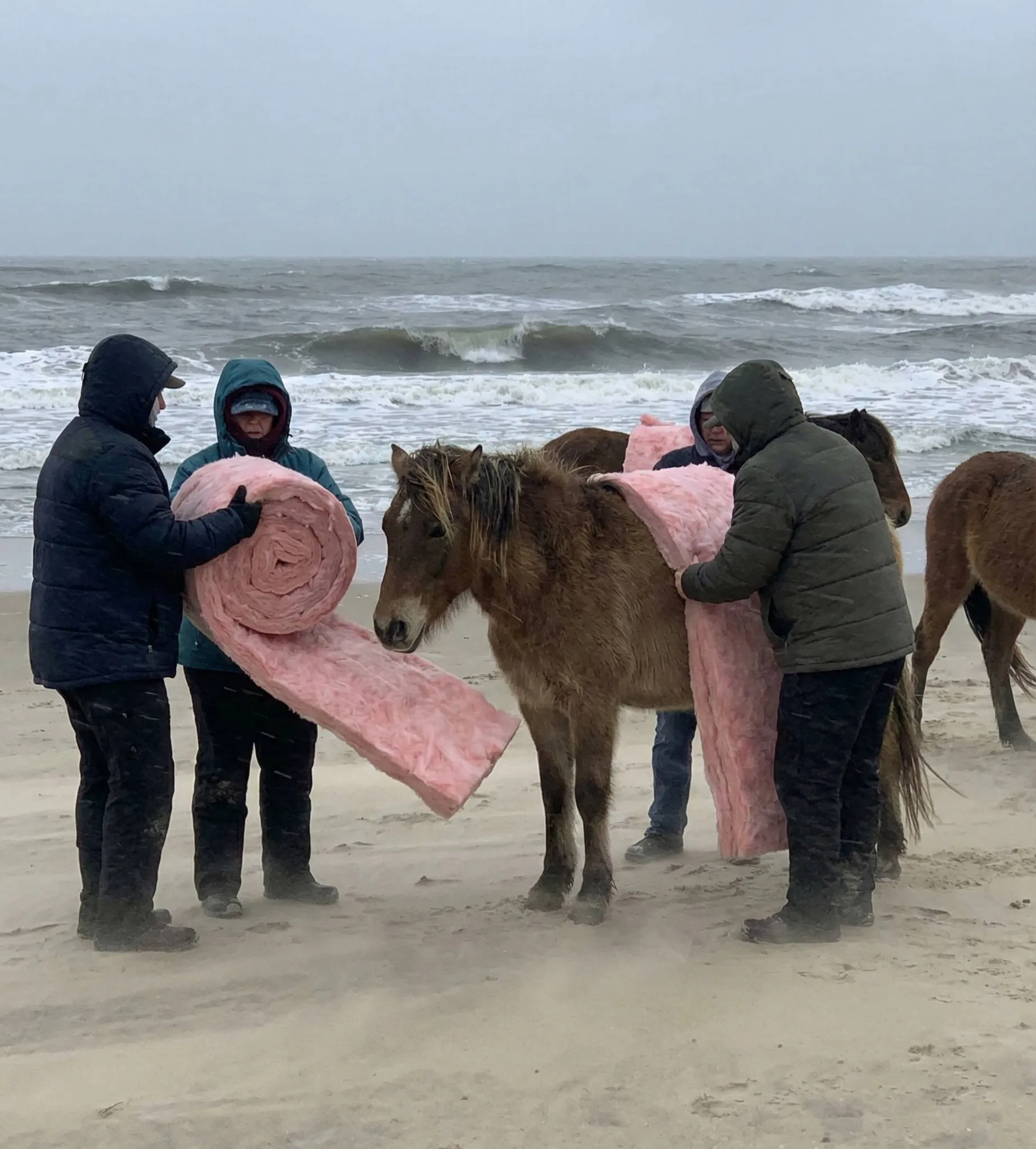 «Сегодня некоммерческая организация Outer Banks People помогла подготовить диких лошадей к низким температурам и возможному снегу. Чтобы сохранить им тепло при экстремальном похолодании, мы аккуратно обернули их использованными материалами для утепления», — говорится в посте на Facebook. «В настоящее время мы принимаем пожертвования утеплителя и клейкой ленты, чтобы продолжать нашу работу. Любой вклад помогает сохранить местную фауну в тепле и безопасности во время зимних условий.»