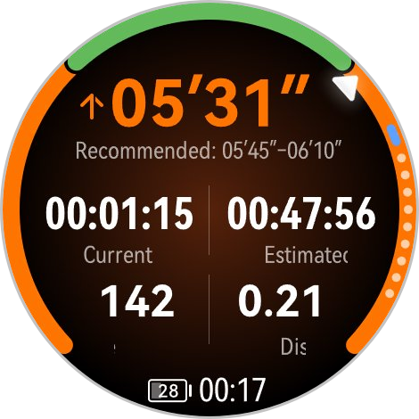 Как только выбран конкретный марафонский забег, приложение формирует тренировочный план, основанный на целях пользователя и его беговых способностях. План включает в себя конкретные еженедельные занятия, такие как легкие пробежки, силовые тренировки для основной группы, пробежки в прогрессивном темпе, силовые тренировки для нижней части тела и длительные пробежки. Для каждого занятия предоставляется подробное руководство по выполнению упражнений, а часы автоматически фиксируют прогресс. Если часы обнаружат, что ваши показатели не соответствуют интенсивности тренировки, они совместно с приложением HUAWEI Health предложат снизить интенсивность, что поможет вам более эффективно адаптироваться к остальной части тренировочного плана.