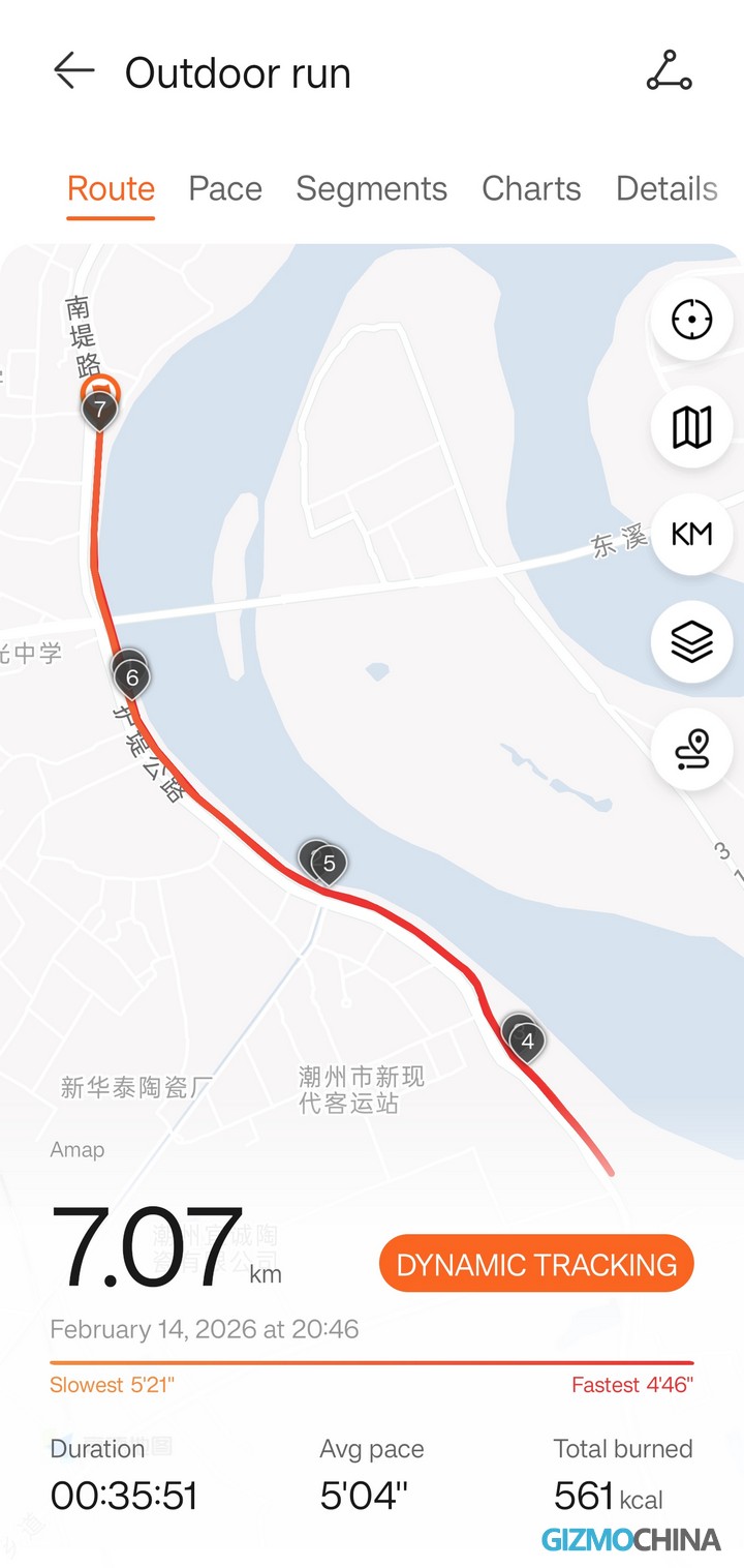 Можно с уверенностью сказать, что во время недавней 40-километровой пробежки не произошло заметных отклонений в позиционировании или отслеживании. Для конкретики приводится следующий рекорд: в общей сложности было пройдено 7,07 километра взад и вперед вдоль берега реки, при этом было уделено особое внимание соблюдению последовательности маршрута. Маршрут, записанный на часах, полностью соответствовал фактическому пути, а индивидуальная дистанция неизменно составляла около 3,03 километра.
